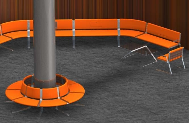 Forslag til modulbasert sofa for ForaForm. Basert på skjøtbare vange i ekstrudert aluminium, kan denne bygges ut i nærmest uendelig antall konfigurasjoner. Sitteflate enten i treverk, eller kledd med tekstil.
